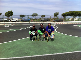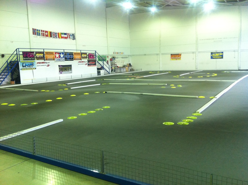 A las 11:30 ya salimos a pista a dar las primera vueltas en el complicado trazado Canario, es una pista my técnica, con curvas enlazadas muy rápidas y en la que solo se acelera a fondo en la recta principal. Ya en esta pila notamos la falta de costumbre de rodar en pistas técnicas, nos pasamos en cada curva y hacemos muuuuuchos metros de mas en cada vuelta. Seguimos rodando otras 4 mangas hasta las 15:00 que ya se cierra la pista para la reunión de pilotos y comenzar las mangas controladas.
