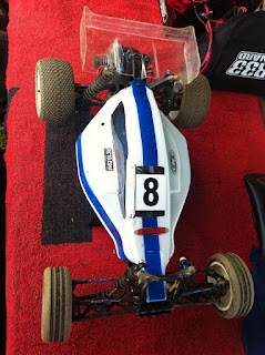 El sábado ya me acerque por la tarde para estrenar mi coche, un Asso B4.1 de segundamano que estaba mejor que nuevo, muy opcionado y todo perfectamente ensamblado por el mismísimo delegado nacional de la escala Alejandro Glez. El coche aun siendo de los mas económicos es el mas visto en España y es la opción lógica para esta escala, todo el mundo tiene recambios, pero lo mejor es que el coche funciona a la perfección. De la anterior carrera me había quedado un sabor de boca al amargo ya que fallaba mucho en los saltos y no tenia apenas control del coche en el aire, pero ya el sábado por la tarde notaba que el coche lo empezaba a llevar yo y no el a mi, como me pasó en la anterior. Estaba rodando en tiempos de la anterior carrera pero sin apenas fallar en los saltos.