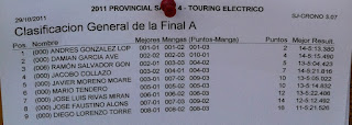 En la pole Damian, segundo Iñaqui y yo tercero. En la primera final, en la primera curva me quedo "aparcado en la hierva" me sacan el coche a pista y empiezo a remontar, en la séptima vuelta estoy cuarto, consigo adelantar a Alberto y me coloco tercero, poco a poco me voy acercando a Iñaqui y a Iñigo que va primero, pero cuando estoy encima de Iñaqui ya finaliza la final y no me da tiempo de hacer nada mas.